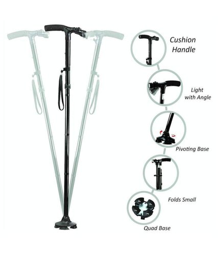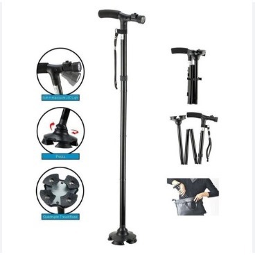 العكاز السحري ، مزود بقاعدة متحركة ليها اربع أرجل من الكاوتش المقوى المانع للإنزلاق، تصميم اليد بخمس مستويات من الطول لتناسب كل الأشخاص.