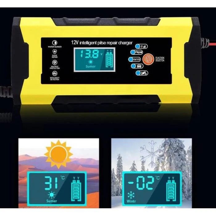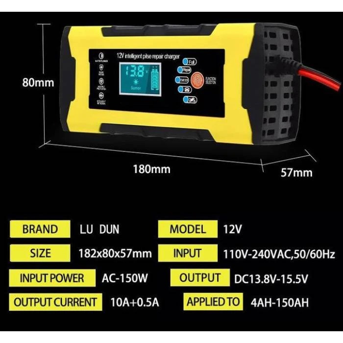 يشتغل بكفاءة على بطاريات الرصاص الحمضية 12V و24V بكل أنواعها (مفتوحة – جافة – AGM – جل)، وده بيخليه مثالي للعربيات، الموتوسيكلات، اللاند سكيب، وحتى المولدات.