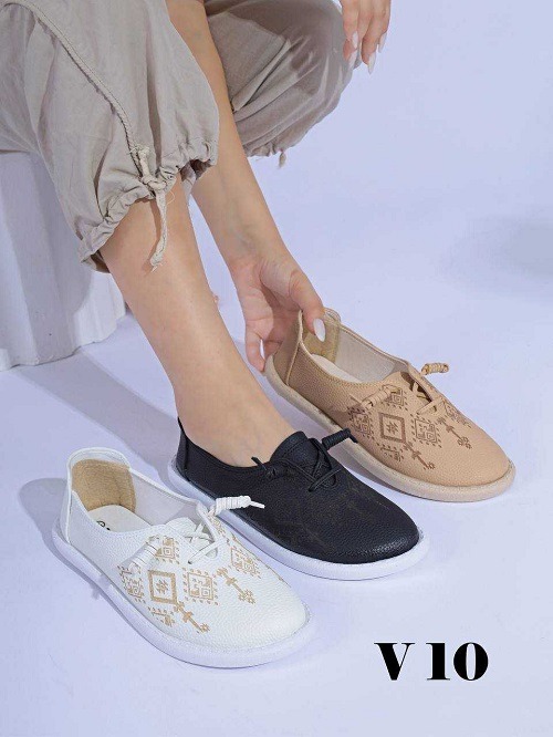 شوز فلات حريمى جلد شرانك مستورد نعل مرن وطري جداً طبي – V10