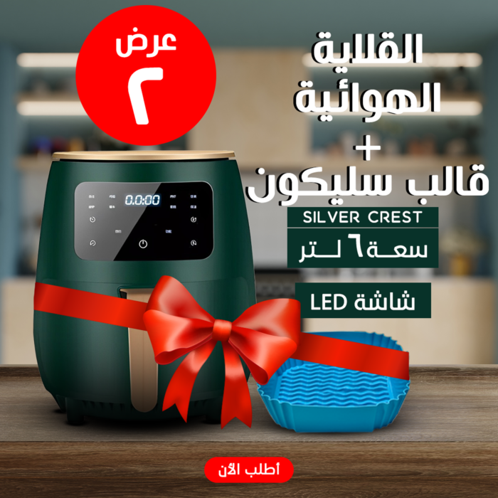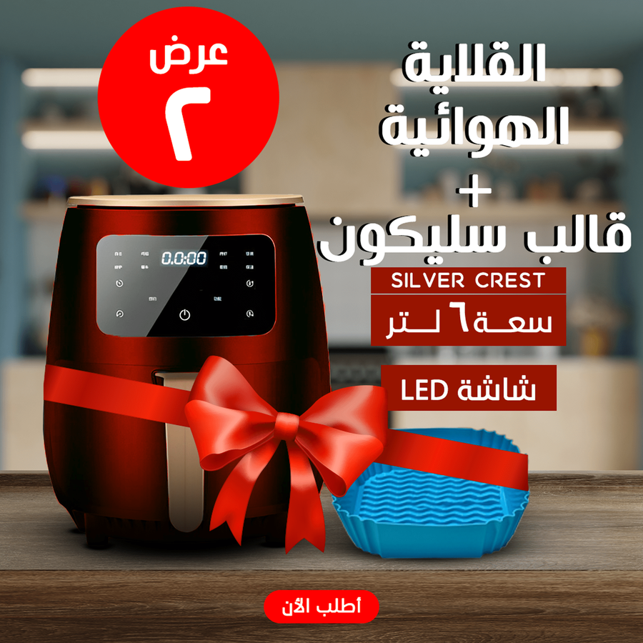 عرض خاص قلاية هوائية بدون زيت 6 لتر - 6 Silver Crest Liter + هدية قالب سيليكون للأير فراير