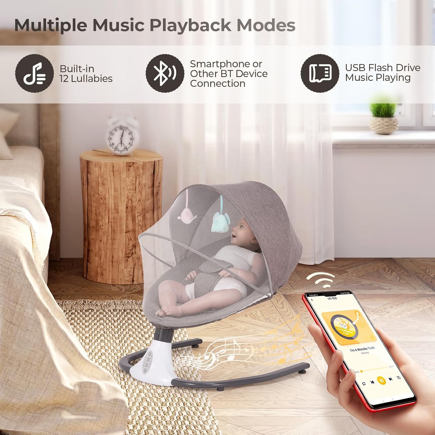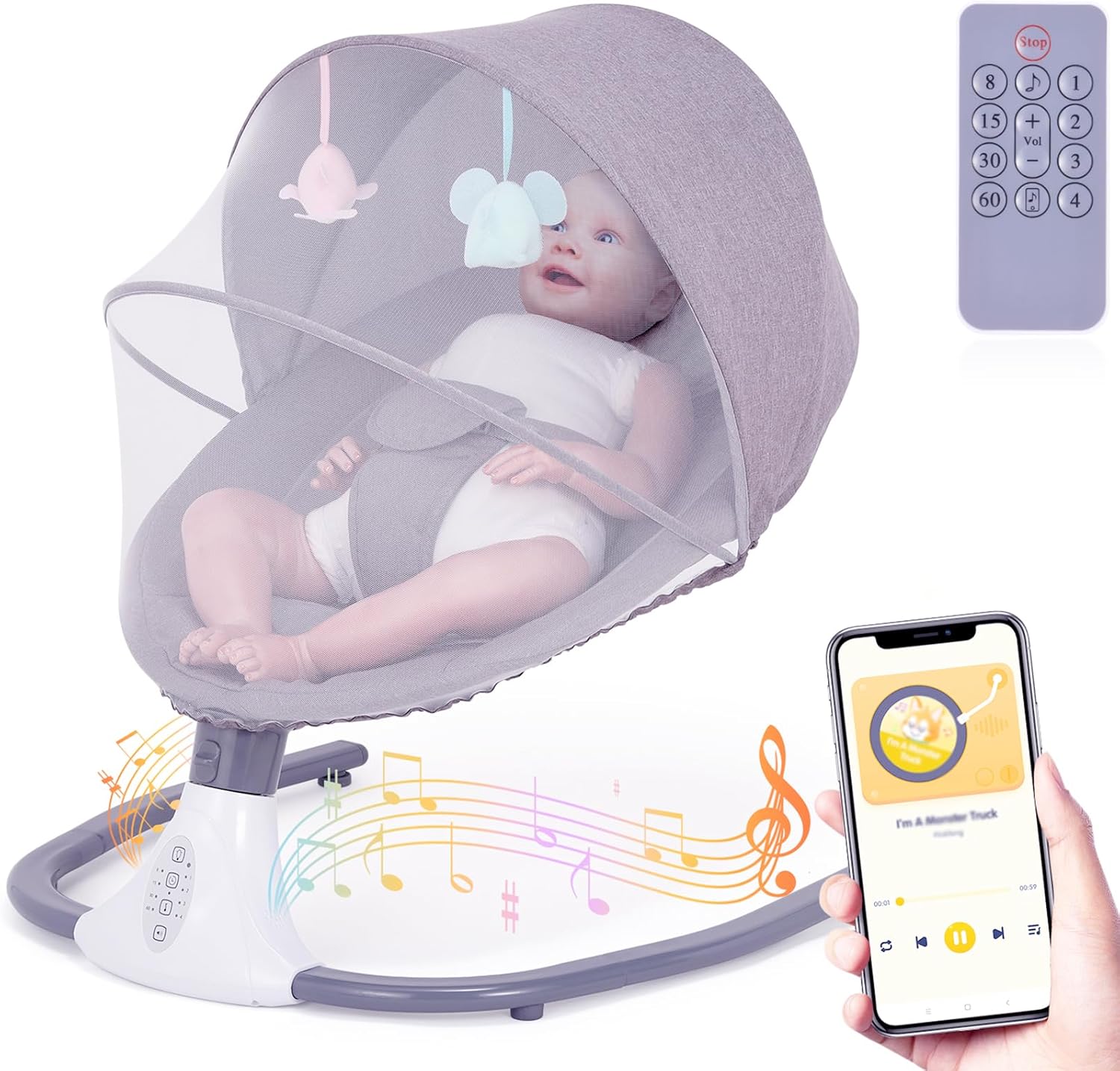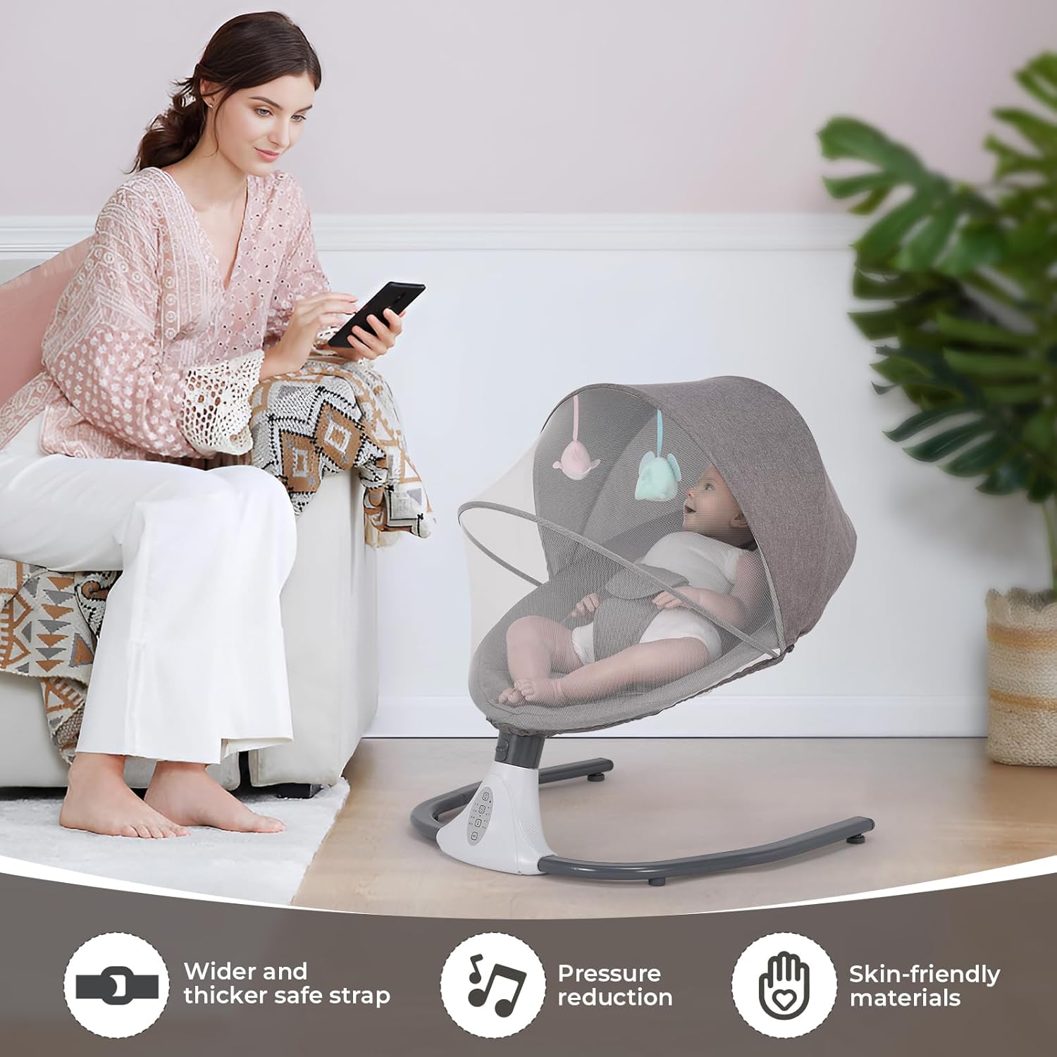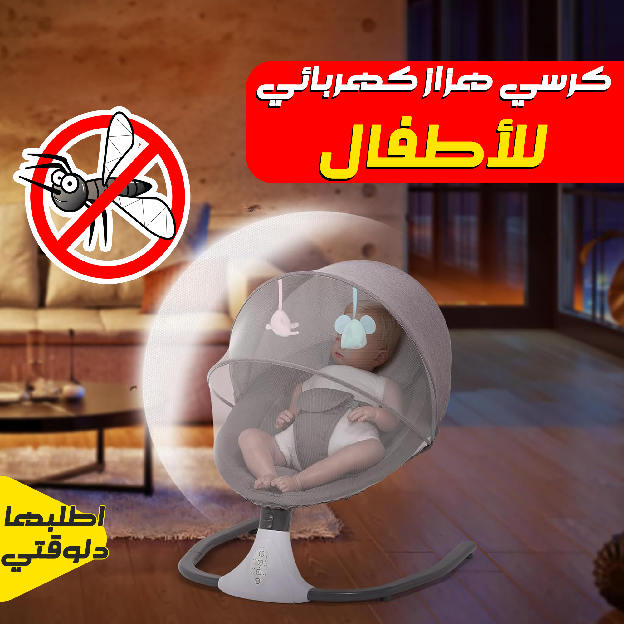 • راحة وأمان لطفلك في كل وقت 👶💤، كرسي هزاز كهربائي يهديه وينوّمه بسهولة، وكمان بيحميه من الناموس والذباب 🦟🚫!