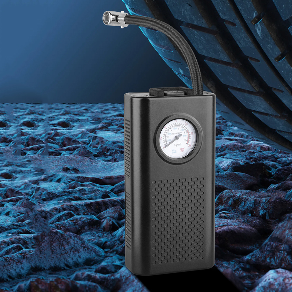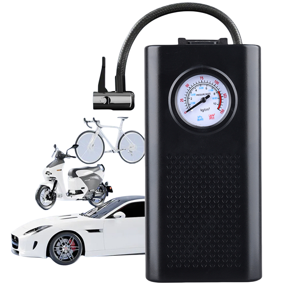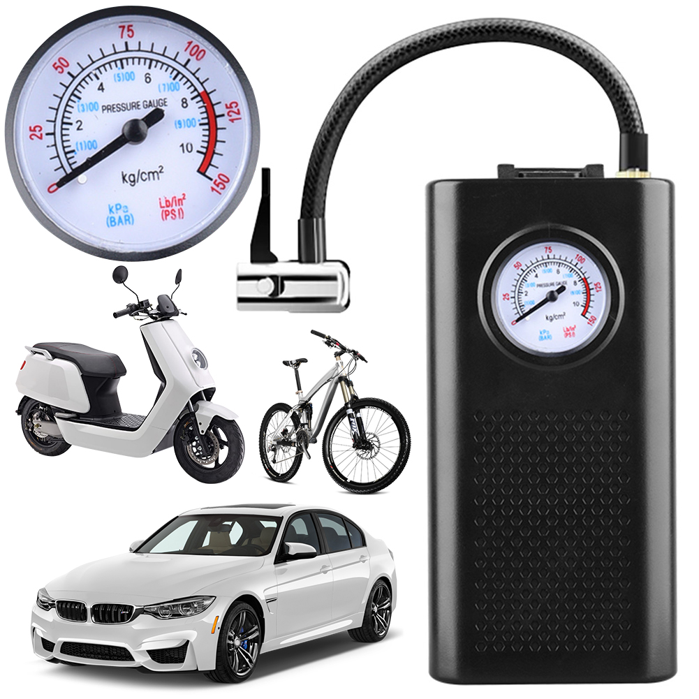 • 1️⃣ قياس ضغط دقيق: شاشة مؤشر تعرض ضغط الإطارات بدقة لضمان النفخ المثالي.