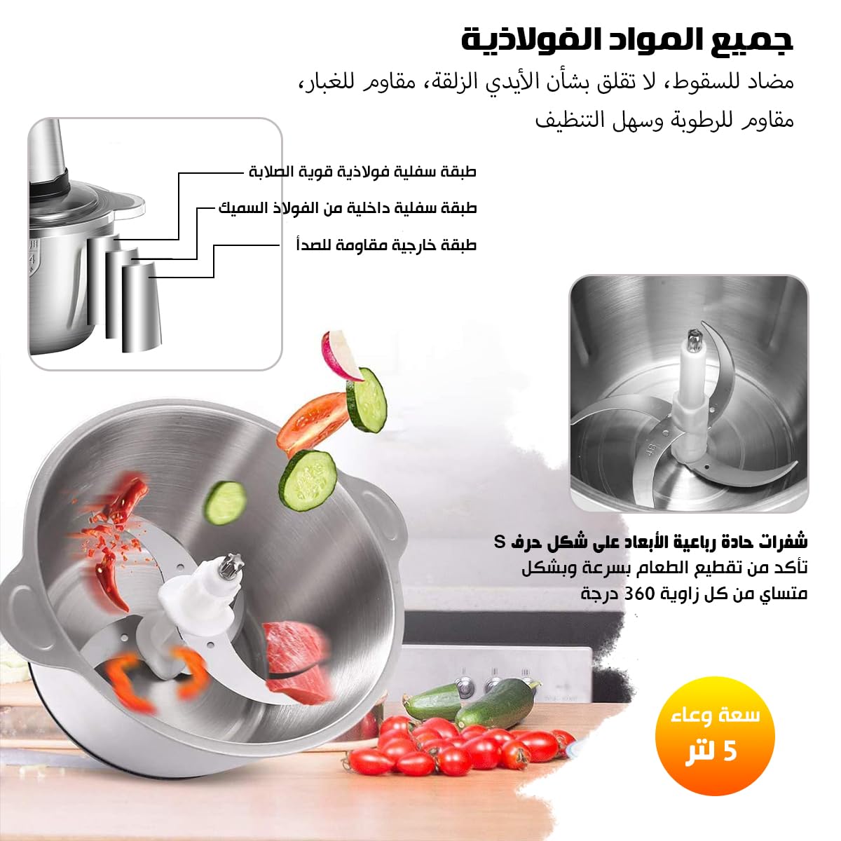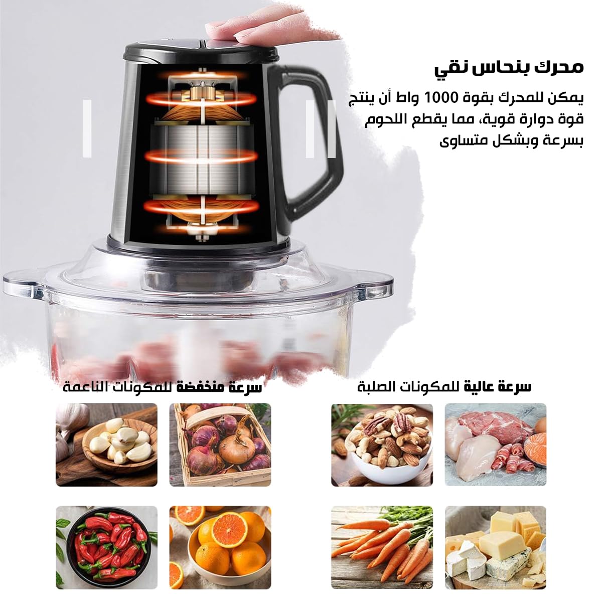 متعددة الاستخدامات 🍖🥗: تفرم اللحوم، الخضار، والتوابل في دقائق. ⏱️💡