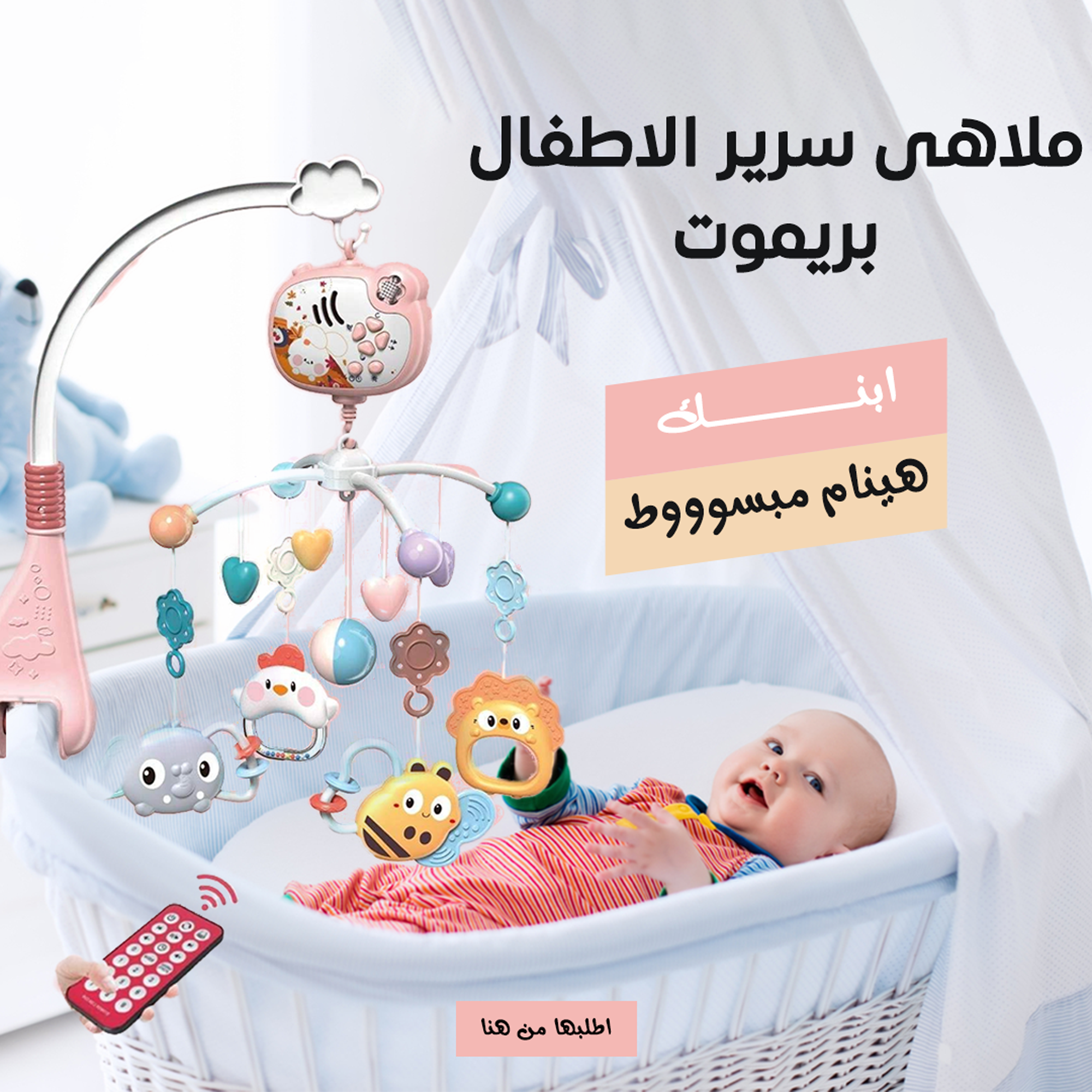 • "ملاهي سرير الأطفال بريموت، ابنك هينام مبسوط ومتهني! أتحكم فيها وإنت قاعد مرتاح على الكنبة مستني أيه اطلبها دوقتي .