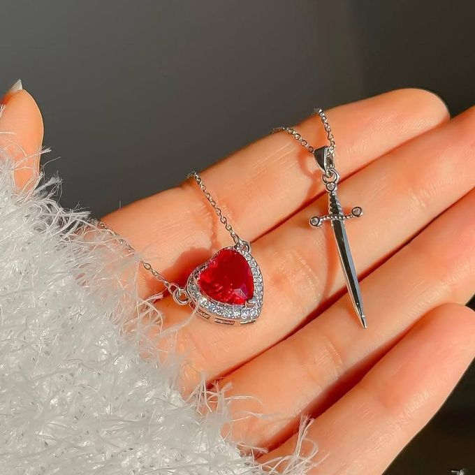 خلي أناقتك تحكي عنك... سلسلة القلب والسيف تجمع بين الرقة والقوة في قطعة وحدة تخطف الأنظار من أول نظرة المميزات: تصميم أنثوي يجمع بين رمز الحب والشجاعة. مطلية بالفضة اللامعة بتفاصيل دقيقة تضيف لمسة فخامة. حجر قلب أحمر فاخر يعكس الضوء بطريقة جذابة. يمكن ارتداؤها بطبقتين لإطلالة أكثر جاذبية وتنوعًا. مناسبة للهدايا أو لإطلالة راقية يومية. تفاصيل المنتج: الخامة: فضة مطلية مع حجر باللون الأحمر. الأطوال المتوفرة: سلسلة القلب: 51 سم سلسلة السيف: 48 سم الألوان: فضي مع قلب أحمر. محتويات العلبة: سلسلتين (قلب + سيف) بطبقتين لإطلالة متكاملة.