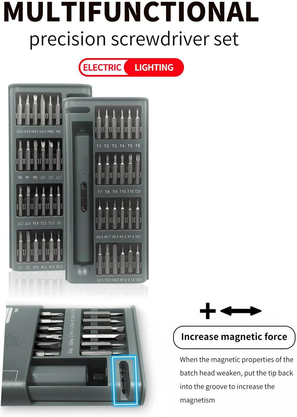 الطقم فيه 48 رأس مختلفة من خامة S2 ستيل القوية، يناسب كل أنواع المسامير – مثالي للموبايلات، اللابتوبات، الكاميرات، الألعاب الإلكترونية، الساعات، وأكتر.